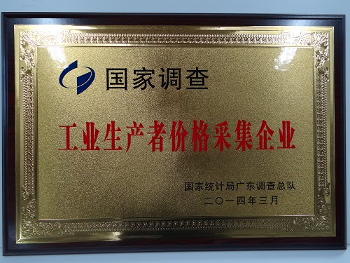 评选为广东工业生产者价格采集企业